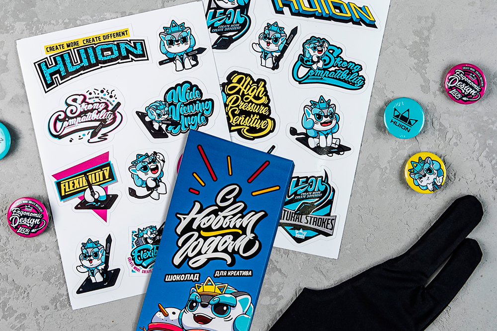 Мы приготовили в подарок стикеры, перчатку для рисования, значки и сладости при покупке планшетов H430P, H640P, H950P